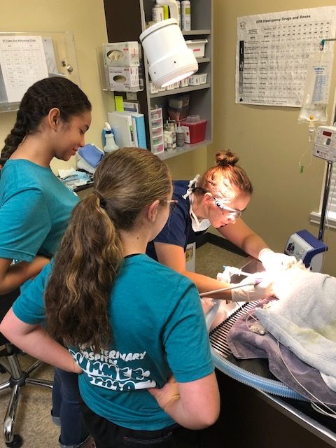Premier veterinary enrichment summer camp is a hands-on, interactive camp for young adults ages 14-18. This camp offers each camper the opportunity to experience animal grooming & bathing, proper animal handling, vaccine protocols, boarding protocols, wellness and sick exams, radiography, ultrasound, in-house labwork and parasite identification, dentistry, observe surgeries, and much more.